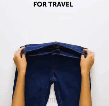 在对折后单独留出一条裤腿,卷好裤子后再用留出的裤腿包住,无论怎么抽怎么动,都不会散掉变形啦~