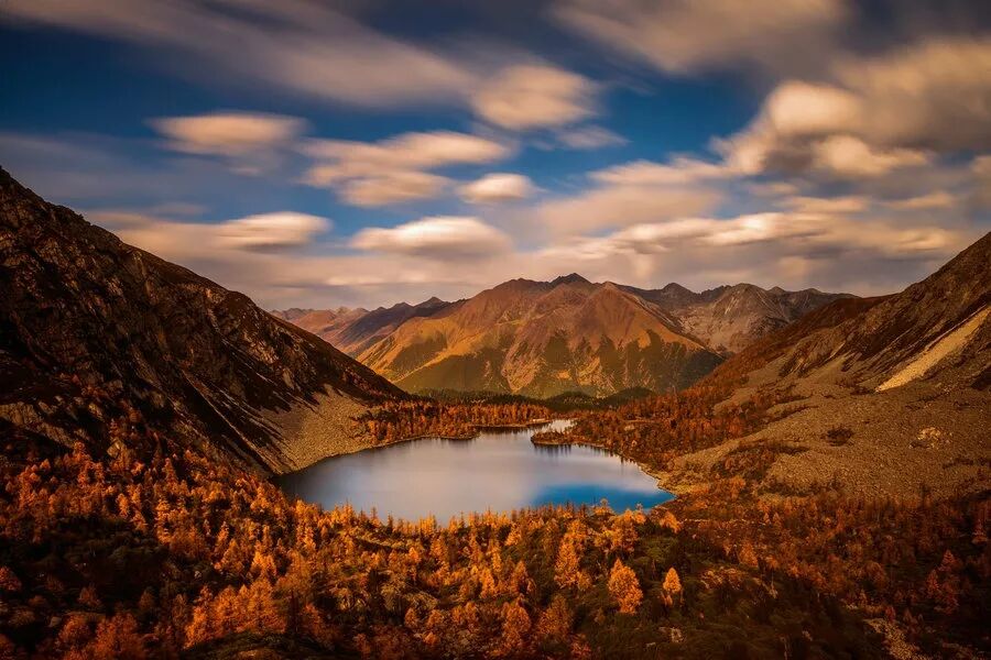 数公里的红叶映衬着湛蓝的湖水,