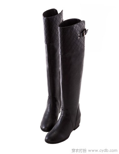 菱格纹内增高过膝长靴